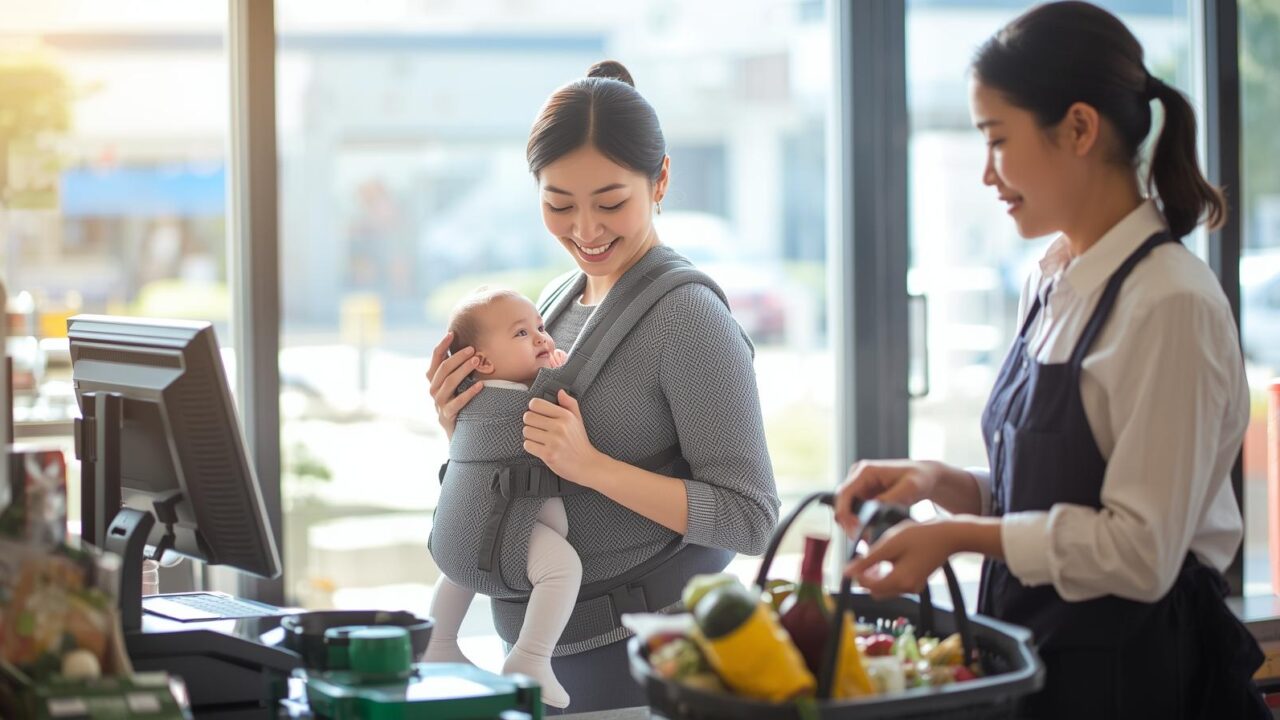 例えば、私はいつも抱っこ紐で買いものに行っていましたが、最寄りのドラッグストアでは、自分で車まで荷物を運んだことがありません!!